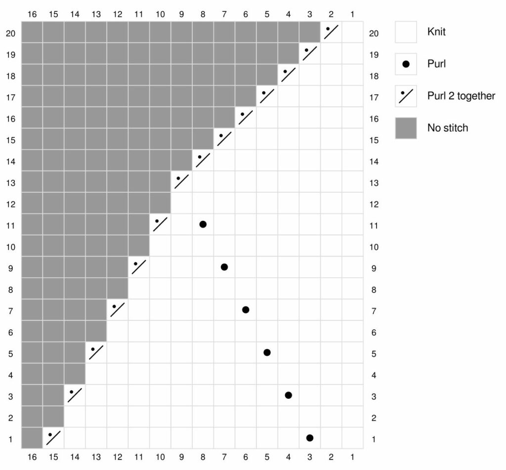 (WS) sl 1, p 16, p2tog, p1, turn